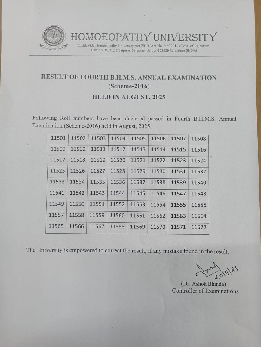 BHMS Ist & IInd Supply Exam Held in Jan- 2024